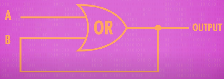 한 비트 정보를 저장할 수 있는 회로를 구성해 보자. 우리는 다음과 같은 스스로 되돌아오는 회로(Loop back)도 만들 수 있다.
