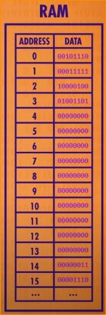 이제 간단한 컴퓨터 프로그램이 RAM에 다음과 같이 저장되어 있다고 가정하고 실행해보자.