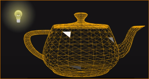 다음으로 쉐이딩(Shading)이라고 알려진 조명에 대해 이야기할 필요가 있다. 3D에서 조명은 물체의 표면에 따라 달라져야 한다. 모든 폴리곤에서 스캔라인 랜더링 색칠을 하면